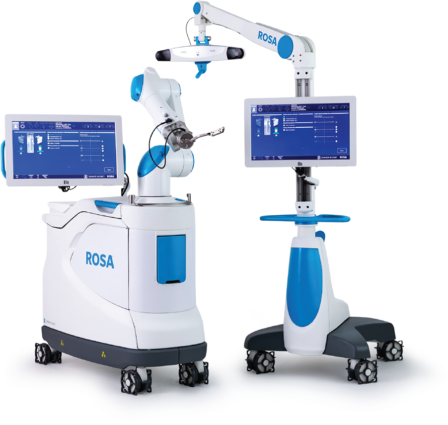 O ROSA Knee System auxilia os cirurgiões na realização da Artroplastia Total do Joelho (ATJ) com recursos para auxiliar nas ressecções ósseas,